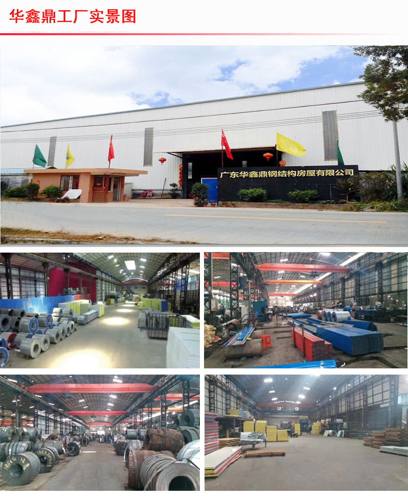 广东华鑫鼎钢结构房屋有限公司是一家专注于集成房屋研发、生产、应用和服务为一体的装配式建筑领航企业,始终以推广和普及安全、节能、绿色集成建筑为己任,主营产品包括钢结构厂房、轻钢别墅、集装箱房、活动板房、活动围墙、彩钢板、彩钢瓦、活动岗亭、木屋、环保厕所、锌钢护栏等。多年来以“科学管理、科技创新”为指导方针,系列产品荣获“广东省名优产品”、“绿色环保首选产品”、“中国著名品牌”、“中国工程建设推荐产品”等多项荣誉证书。良好的售前、售中和售后服务,赢得业界良好的口碑和客户的尊重。近年来我司致力于发展国际市场,产品更远销中东、非洲、东南亚、欧美等国家,受到广大新老客户的好评。